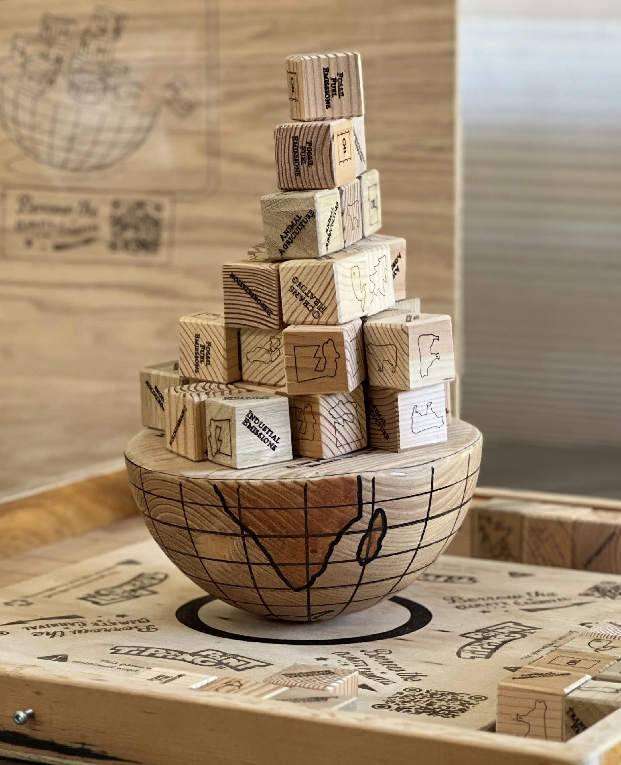 A smaller table top version of Tipping Point for up to 4 players. Can you balance over 50 blocks without overwhelming the earth? Industrial Emissions, Animal Agriculture, Transportation Emissions, Oceans Heating, Fossil Fuel Emissions and Deforestation all stack up to throw off our delicate balance. Last player to add a block without tipping the world, wins!