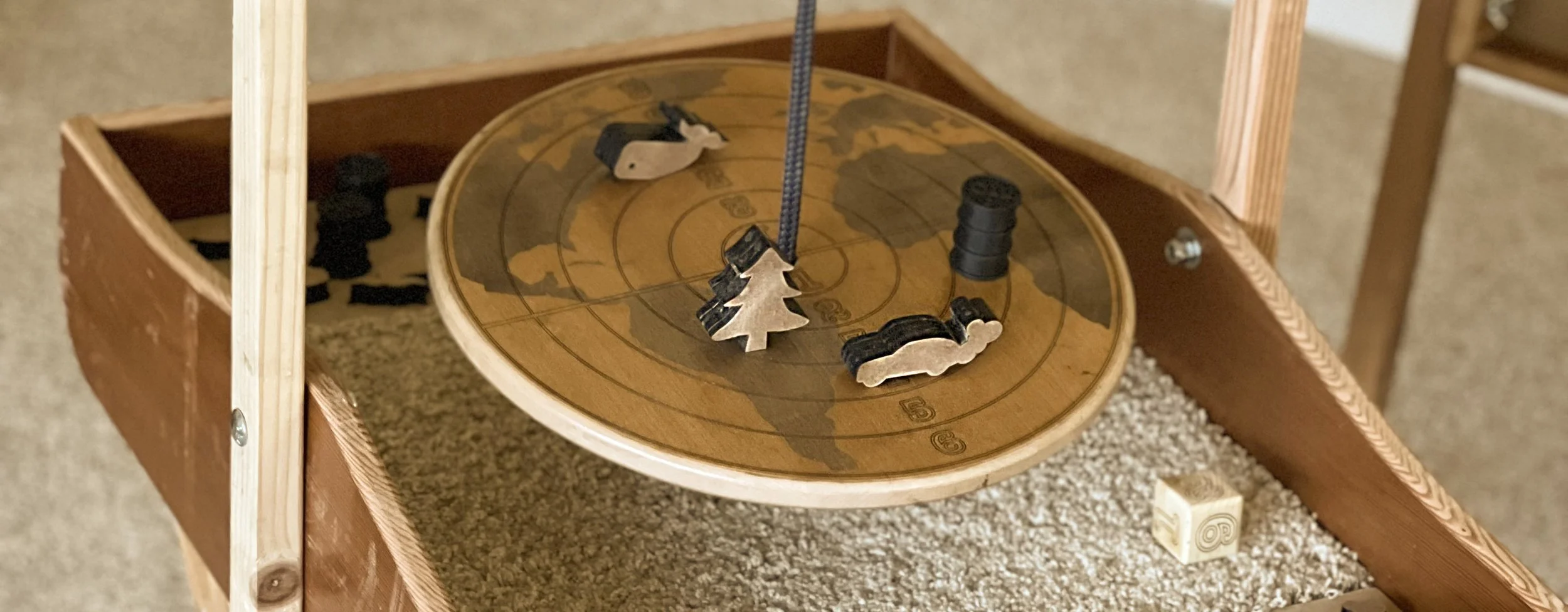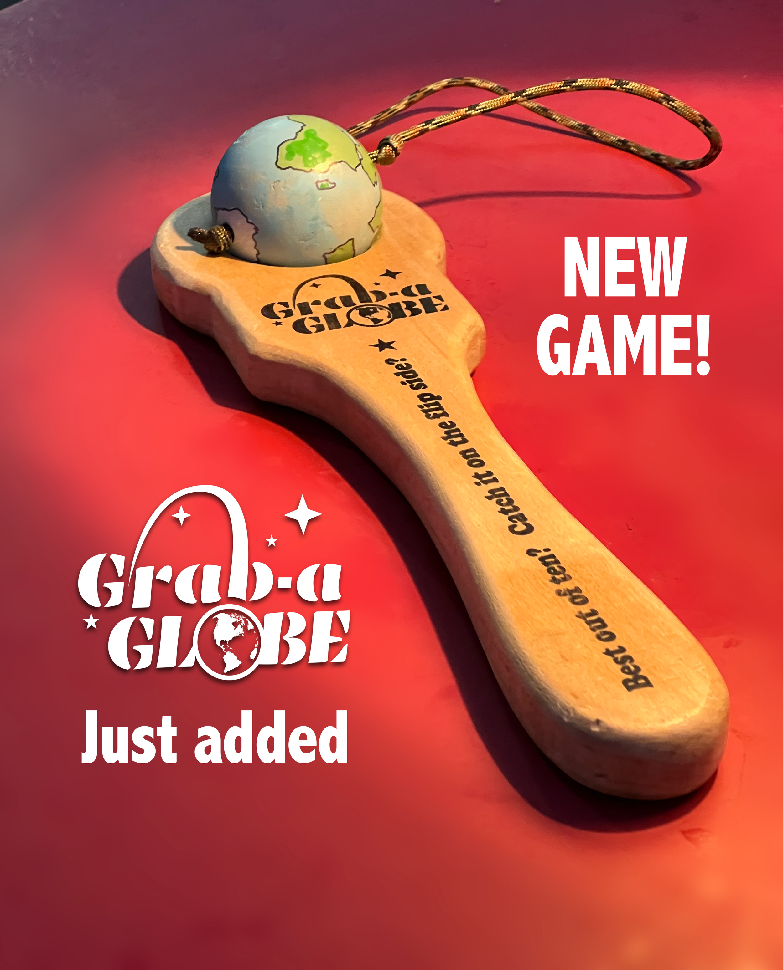 A classic game with a global twist. Toss the earth and catch it safely back in it’s circle. Best out of ten? Trick toss - catch it on the flip side? I made two so a couple people can just pick ‘em up and play.